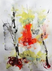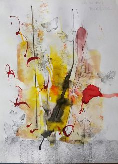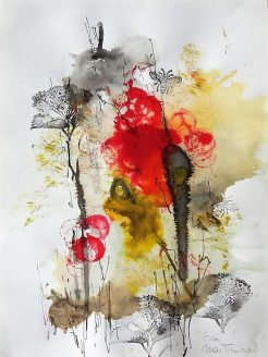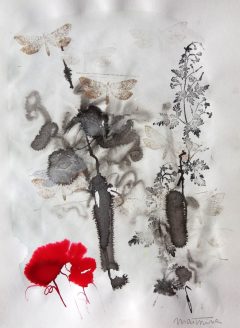 Serie de obras trabajadas en tinta china, aguadas y estampaciones sobre papel.